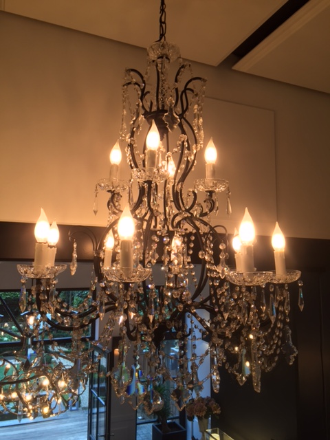 kristallen luster met zwart frame